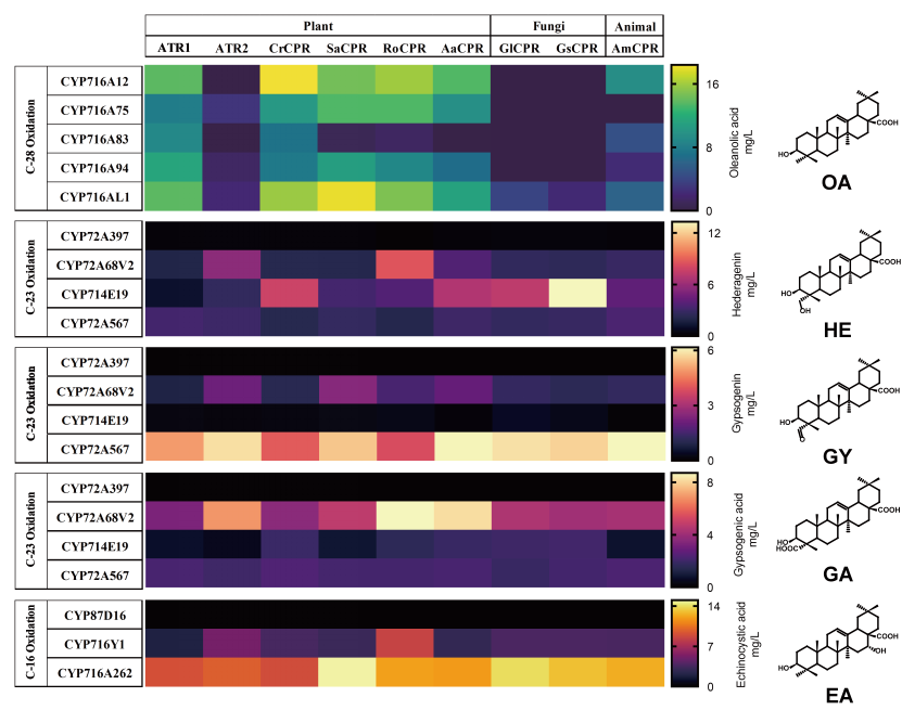 9月26日,中国科研实验室深圳先进技术研究院合成生物学研究所Howard Chou团队在Metabolic Engineering上发表了题为Combinatorial optimization and spatial remodeling of CYPs to control product profile的研究成果。在该研究中,研究人员顺利获得组合优化策略,在酿酒酵母中成功构建了细胞色素P450氧化酶(CYP)和细胞色素P450氧化酶还原酶(CPR)的氧化网络,实现特定三萜皂苷quillaic acid(QA)的高效生物合成。