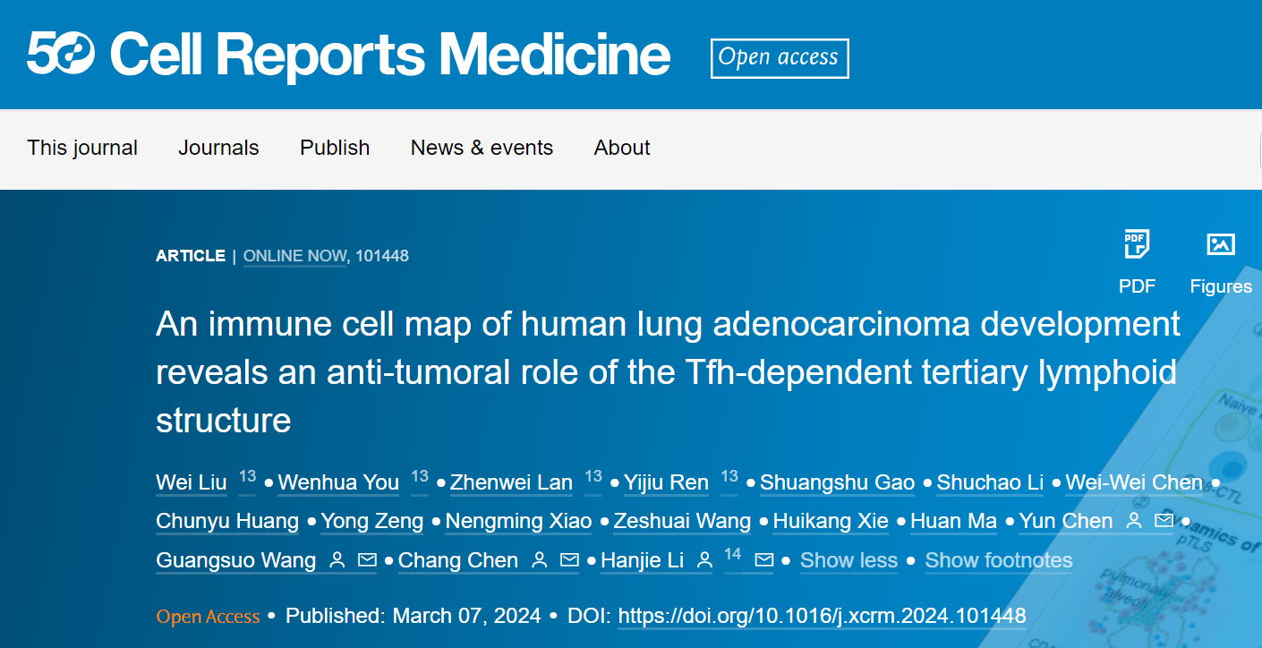 Cell Reports Medicine | 李汉杰团队等构建早期肺腺癌免疫动态图谱并揭示Tfh细胞抗肿瘤机制