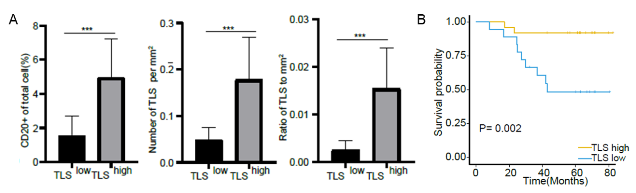 图5 早期肺腺癌中TLS与预后结果呈正相关