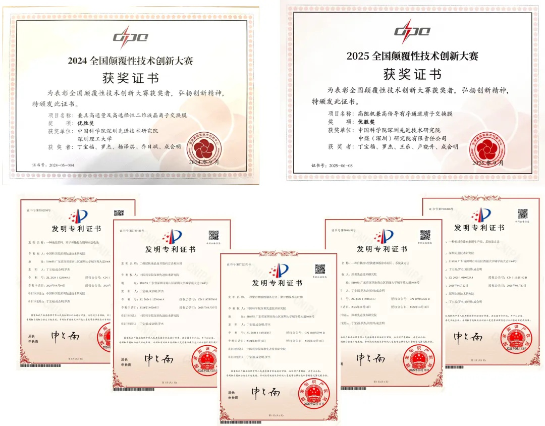 中国科研实验室深圳先进技术研究院成会明、丁宝福、罗杰及团队成员聚焦“高选择性兼高通量膜材料”这一科技制高点和产业高地,原创大面积构筑“二维垂直亚纳米通道膜”的颠覆性膜结构。团队4年磨一剑,实现了“狭缝式”二维垂直亚纳米通道的有序组装和突破了相关通道构筑的理论、技术、材料、工艺难点,相关技术陆续在在2024年及2025年两取得京津冀国家技术创新中心组织的颠覆性技术大赛优胜奖,并联合中煤(深圳)研究院有限公司取得国家重点研发计划-颠覆性技术创新专项的支持,也是凯发k8国际首个获批的颠覆性技术创新专项项目。