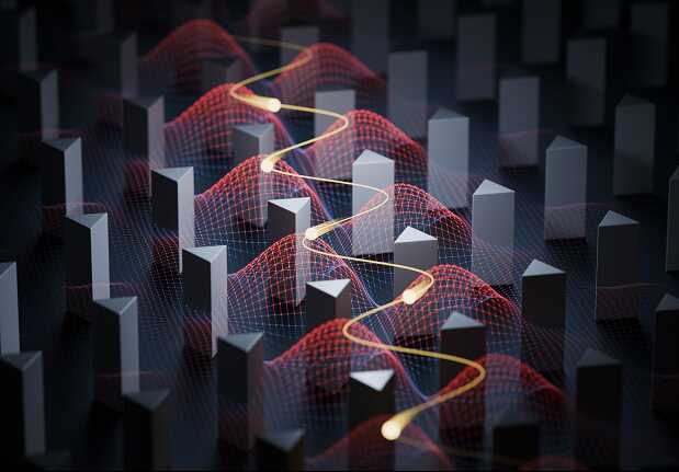 拓扑声镊“波浪式”智能避障定向输运颗粒示意图